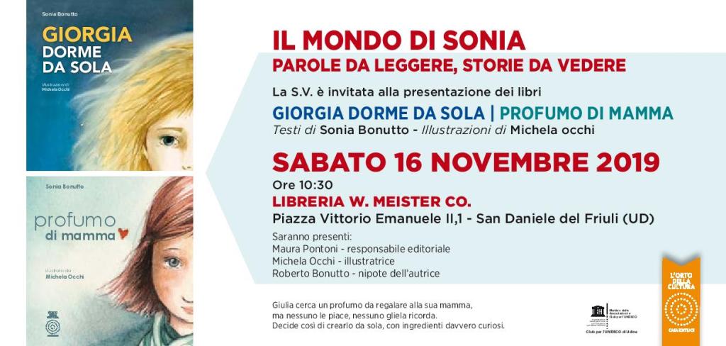 Sabato mattina chi ci sarà ci racconterà dell’eco lasciata da chi non c’è più, Sonia Bonutto narrata da chi l’ha conosciuta, apprezzata e ci ha lavorato insieme, un’occasione unica di conoscere quanto un libro sia più, ed oltre, le proprie pagine