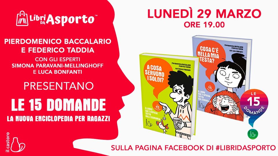 Lunedì 29 marzo alle ore 19.00 sulla pagina facebook di Libri da Asporto e sulla nostra pagina potrete seguire la presentazione on line della nuova collana dell'editore Il Castoro "Le 15 domande".