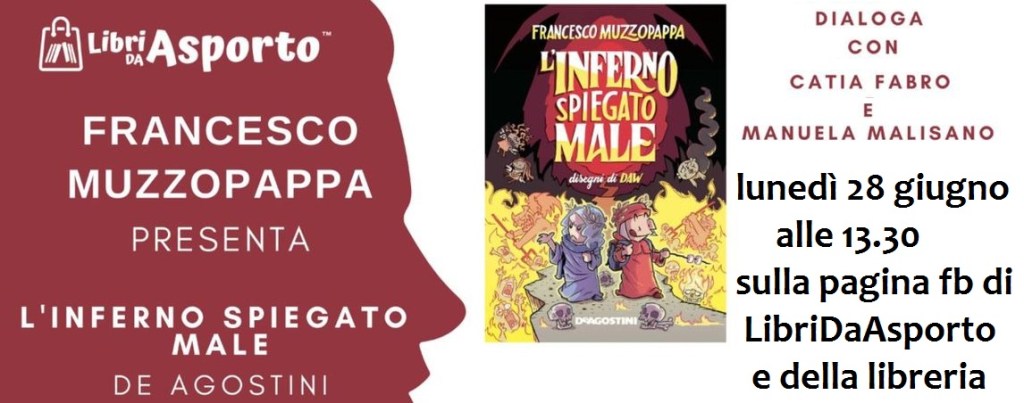 Seppure in forma telematica Francesco Muzzopappa torna a trovarci! Come sapete i libri per ragazzi hanno una potenza che quelli per adulti si sognano dato si che possono essere letti sia da piccoli che da grandi e questo è un libro che rappresenta perfettamente la categoria: L’inferno spiegato male ( De Agostini).